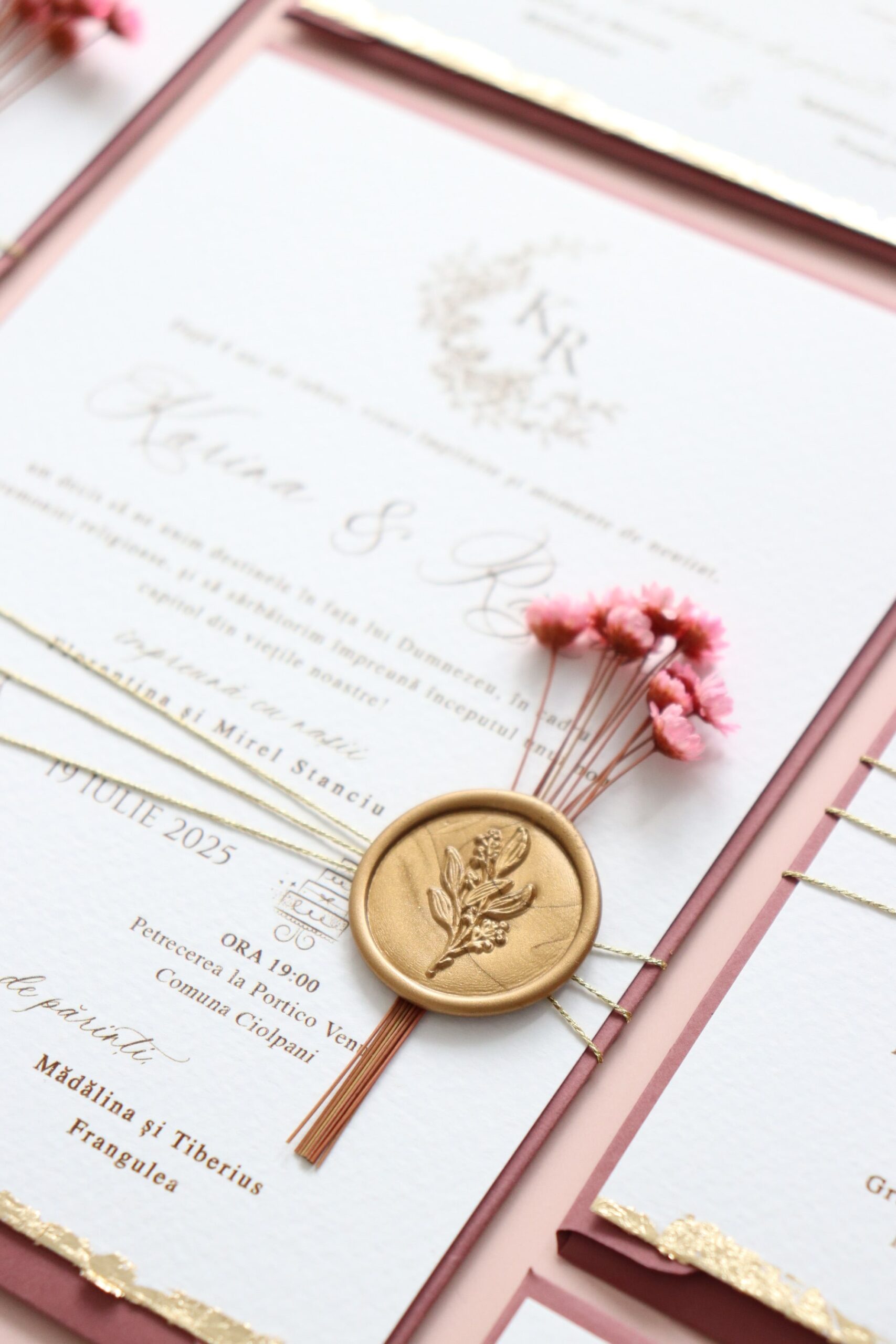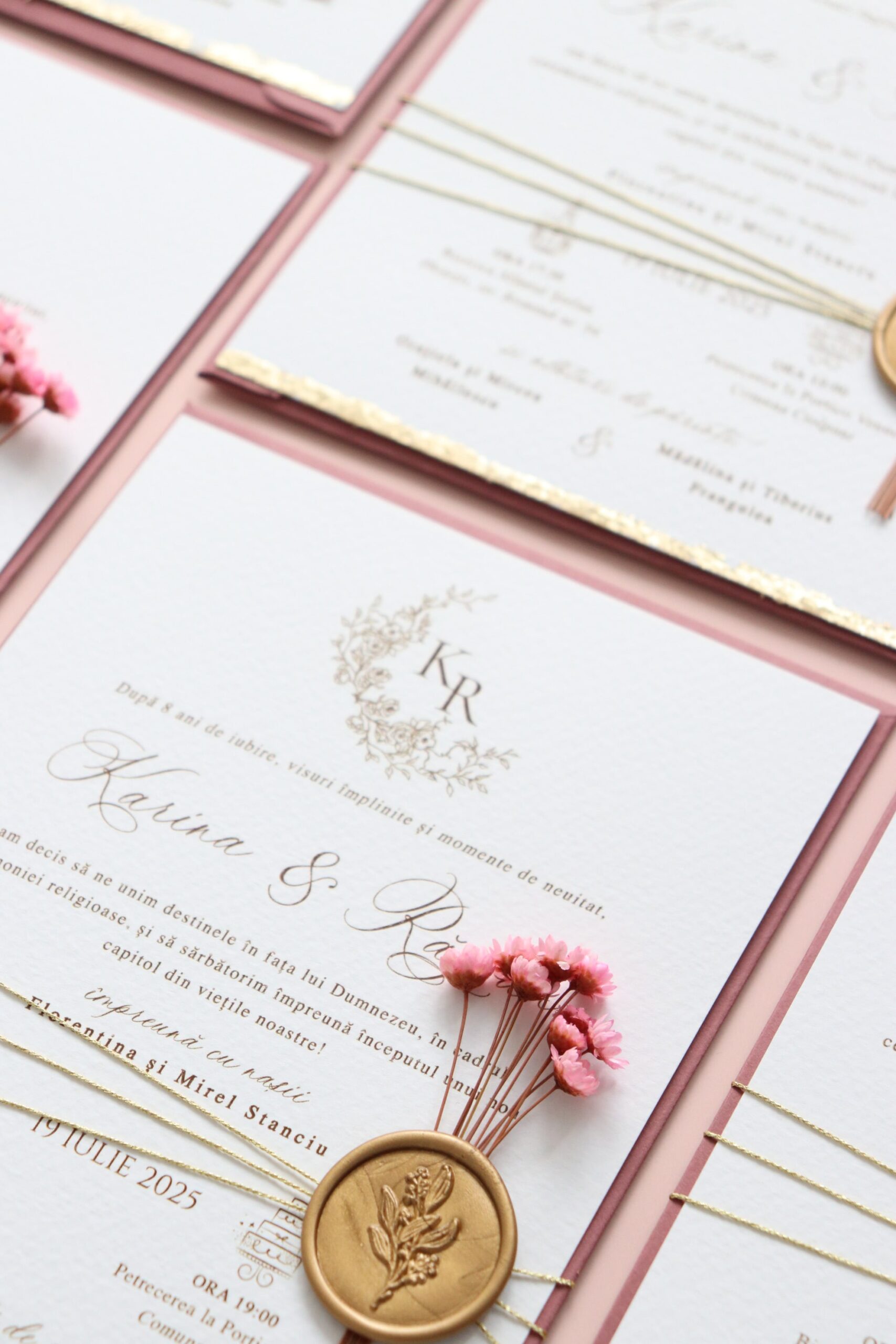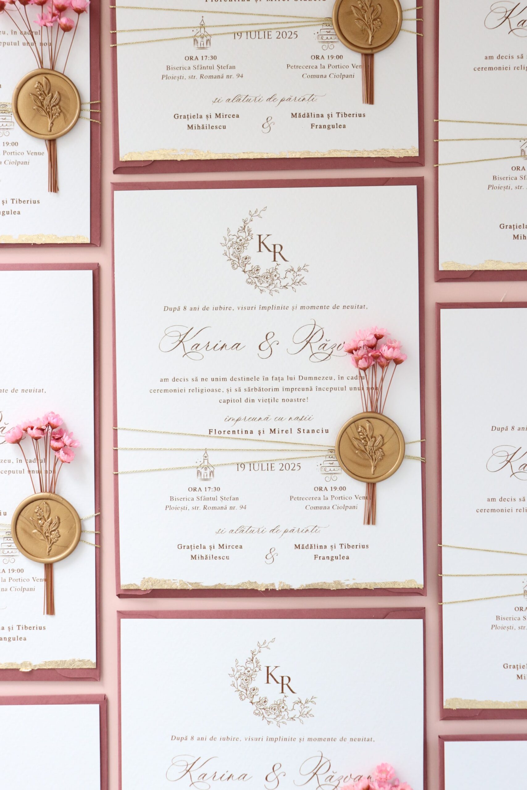 *Ne putem ocupa și de restul papetăriei pentru nuntă astfel încât accesoriile să fie în acord cu designul invitațiilor.