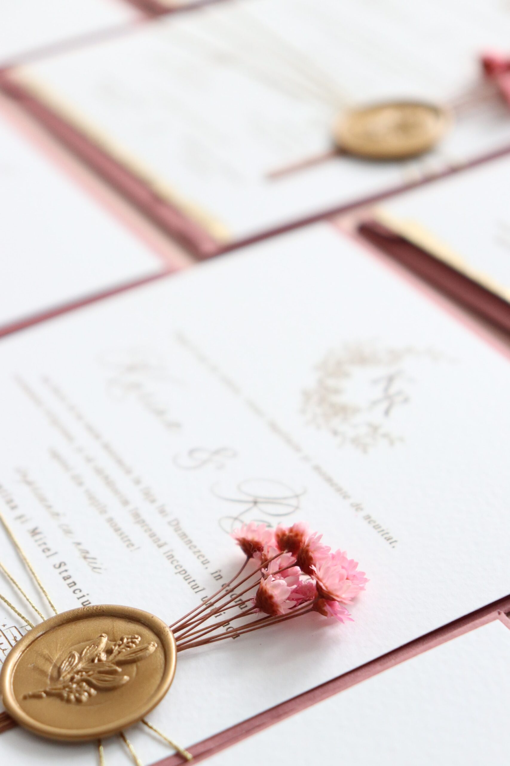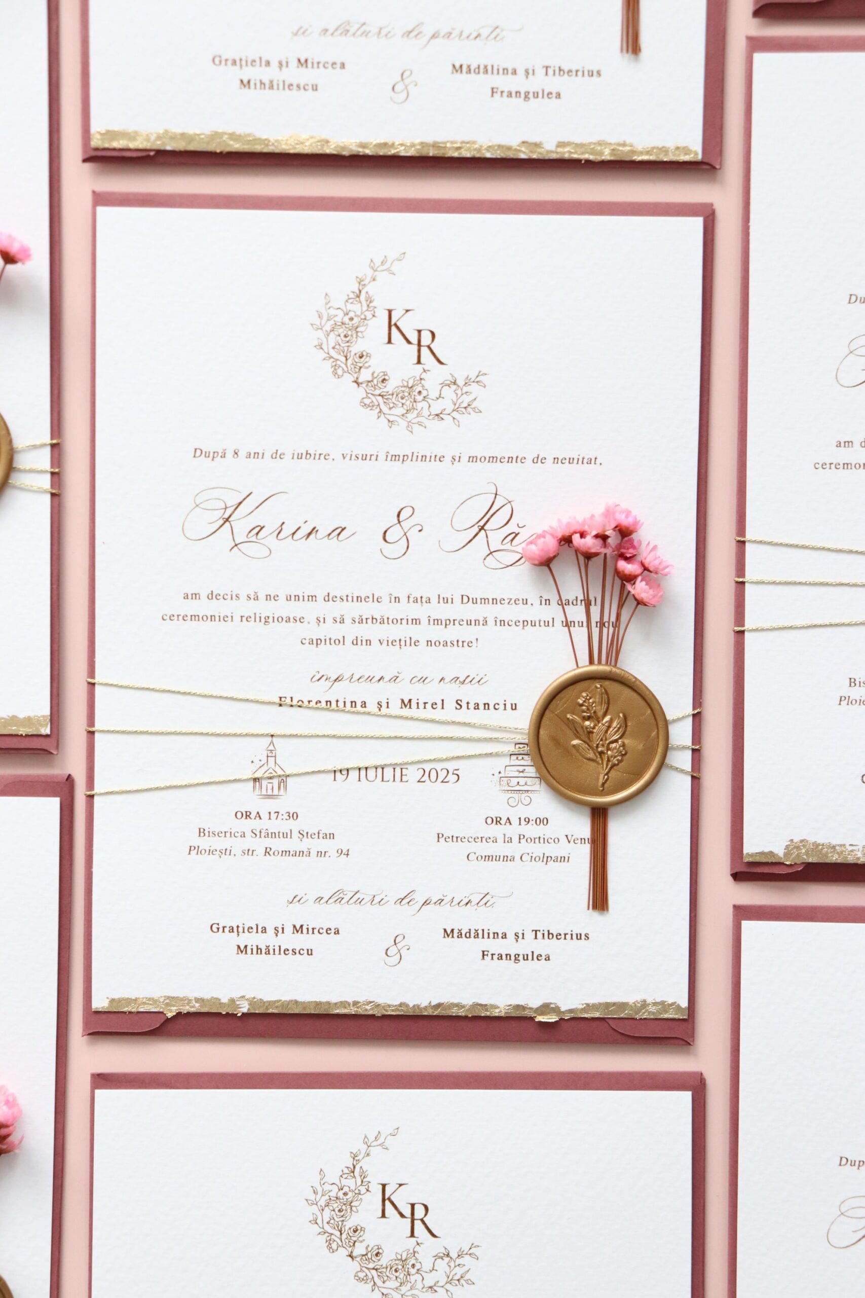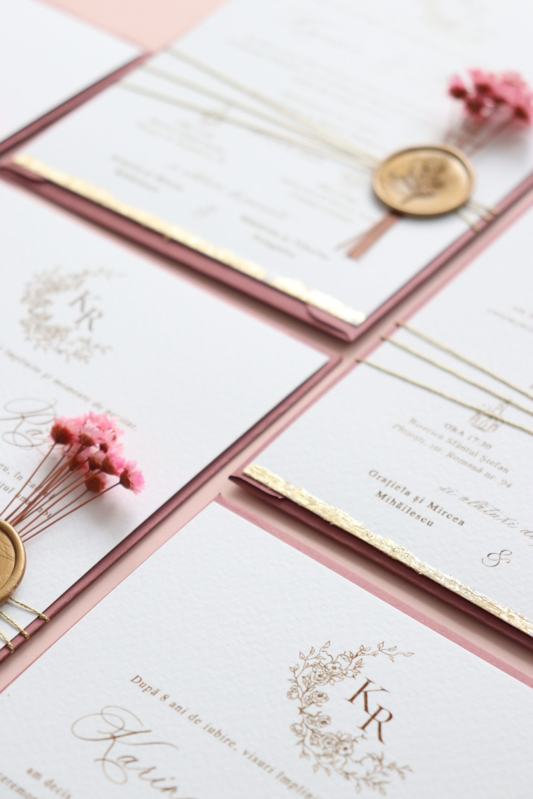 *Ne putem ocupa și de restul papetăriei pentru nuntă astfel încât accesoriile să fie în acord cu designul invitațiilor.