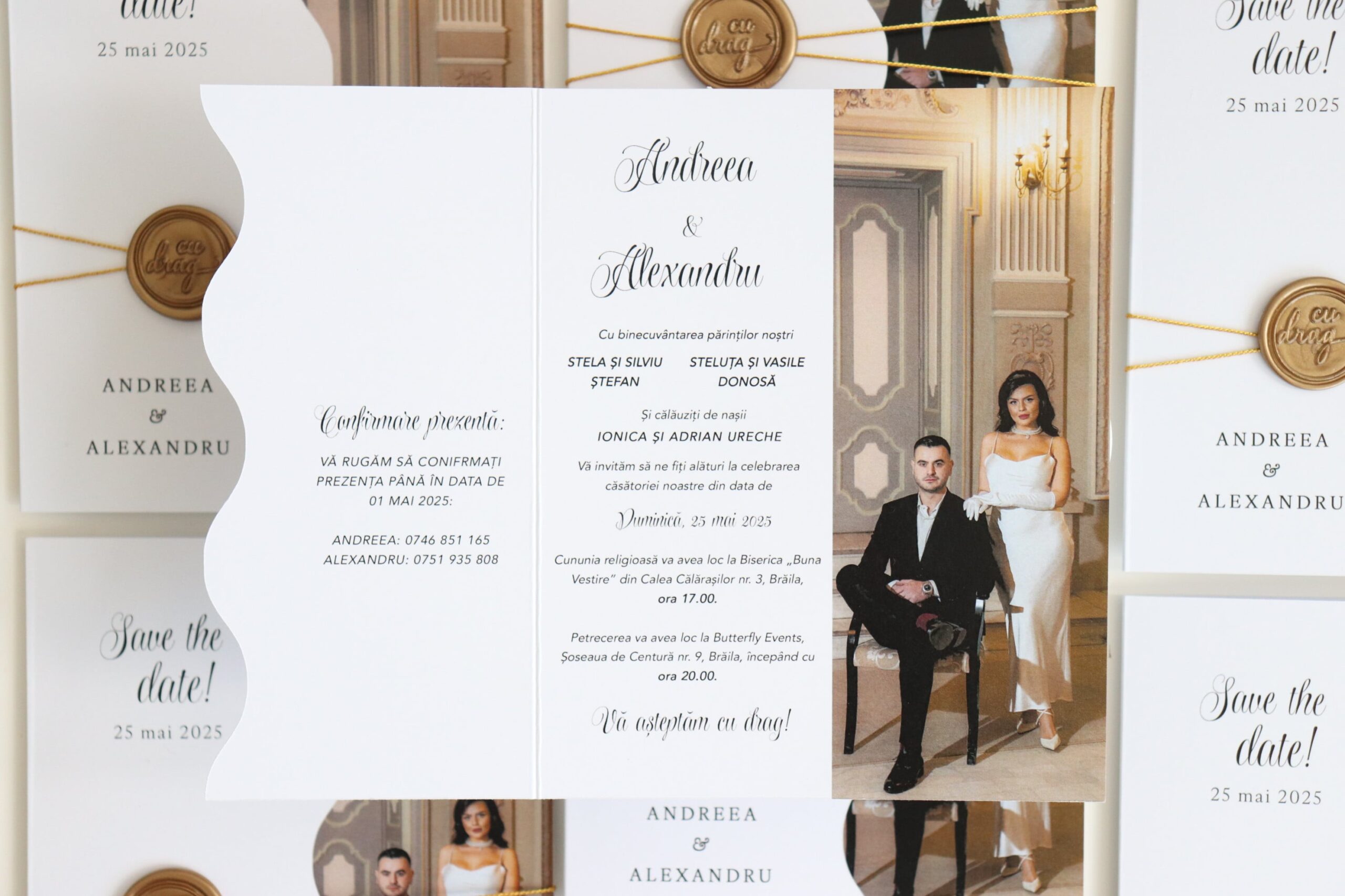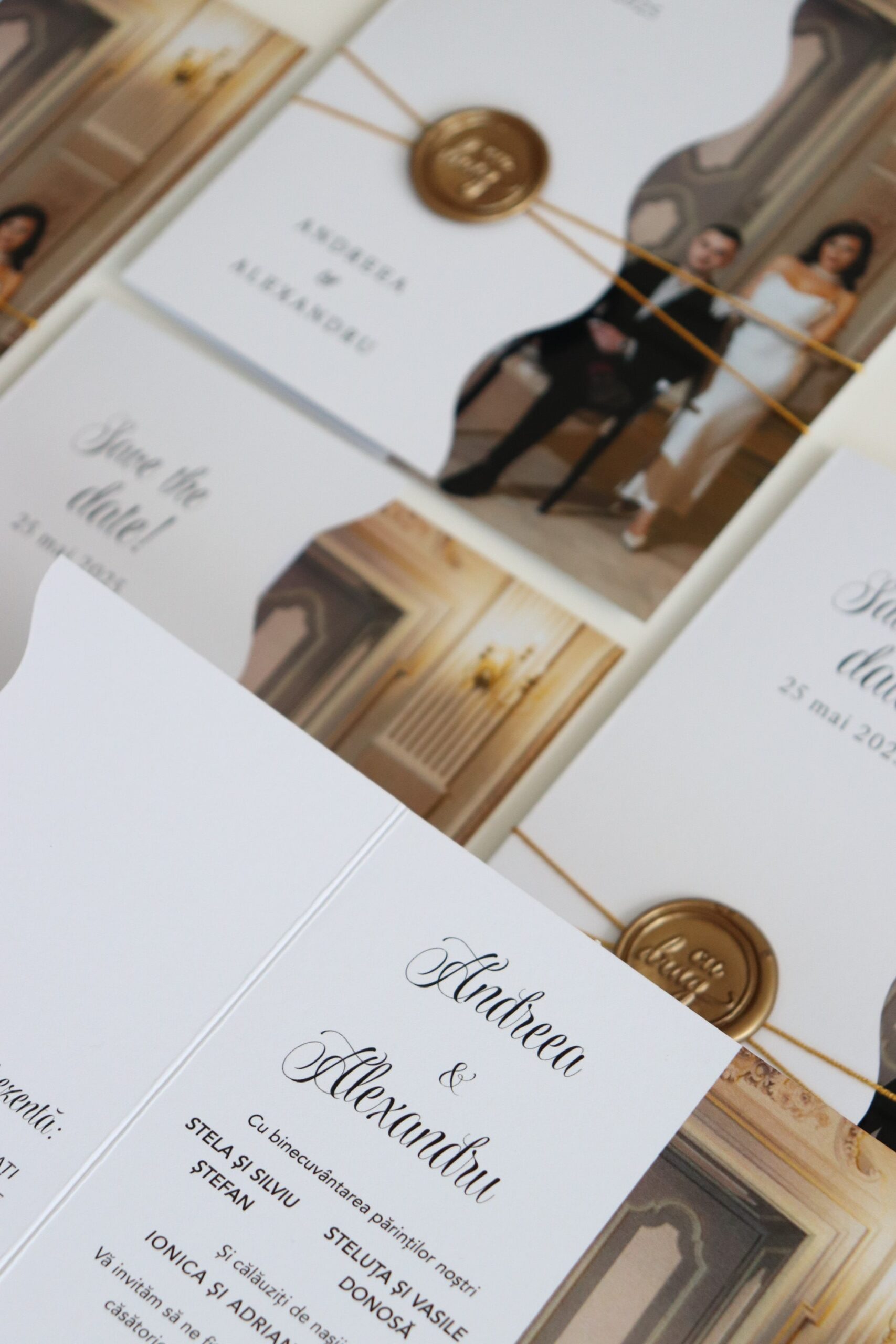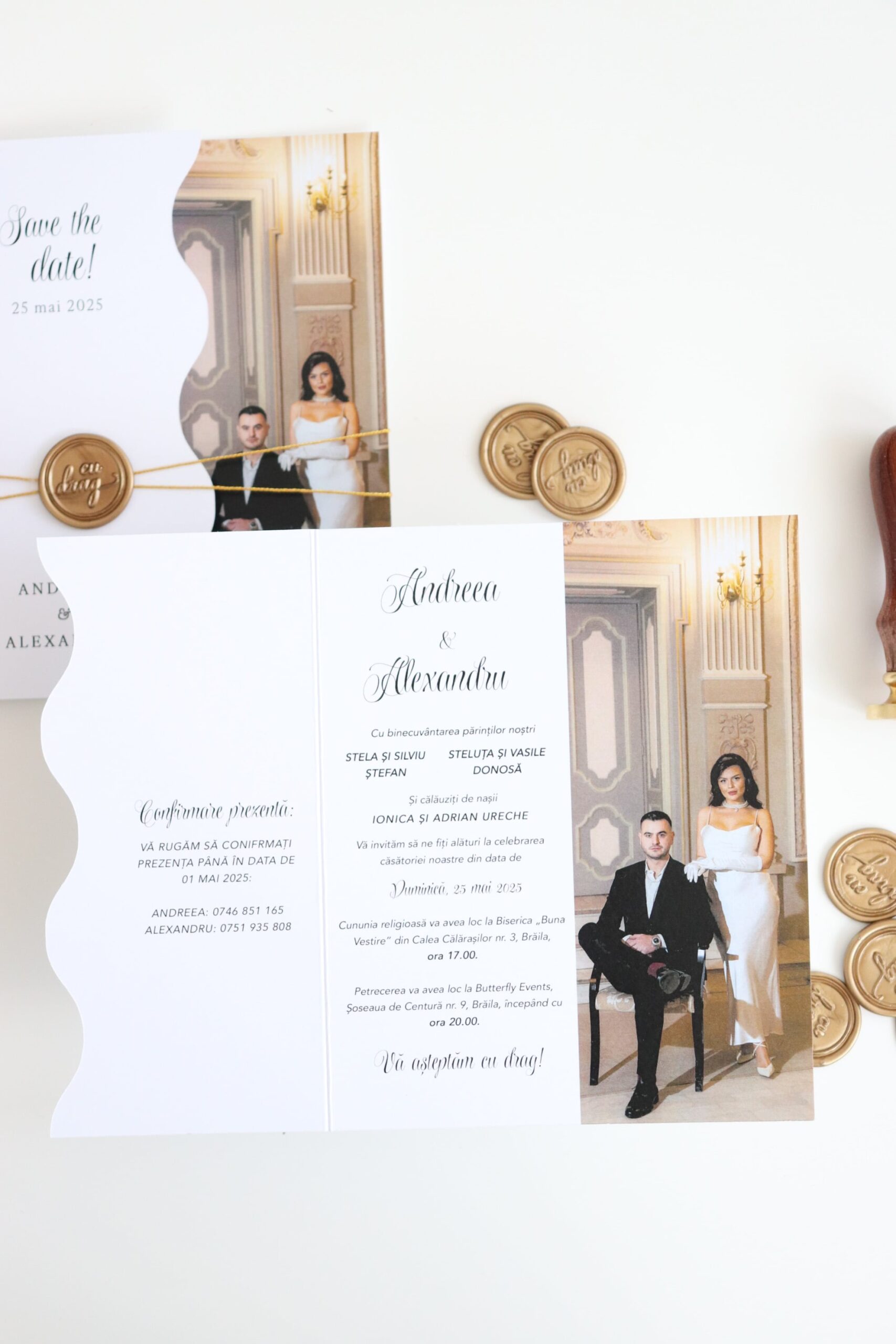 *Ne putem ocupa și de restul papetăriei pentru nuntă astfel încât accesoriile să fie în acord cu designul invitațiilor.