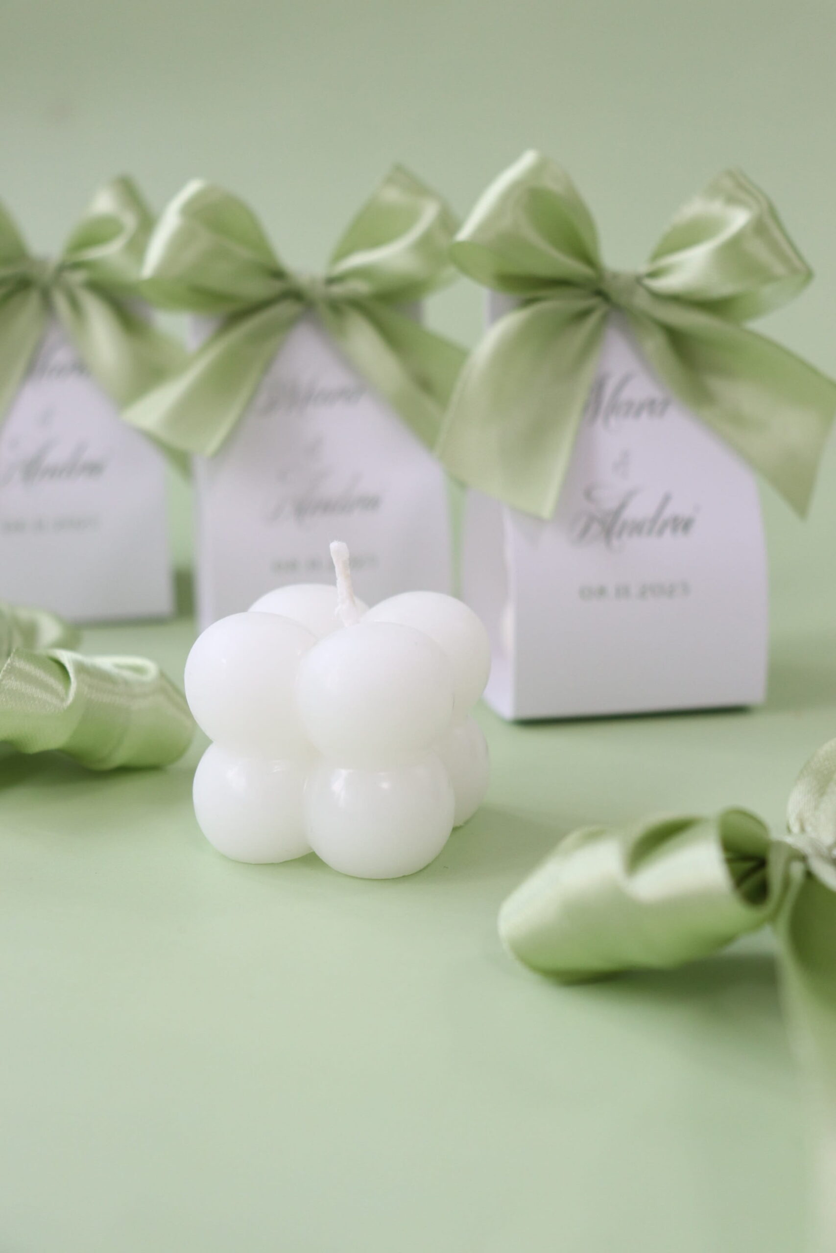 Marturii pentru nuntă – lumanări bubble din ceară de soia, parfumate, personalizabile și prietenoase cu mediul. Livrare rapidă și ambalare premium. Comandă azi marturiile perfecte pentru ziua ta specială!